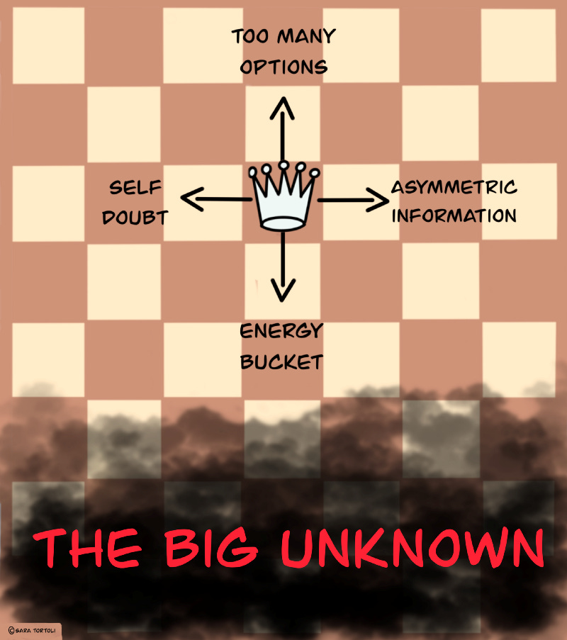 The “best possible decision” is therefore one that minimizes the “Big Unknown”, by making the most out of the information we have available, and ensures a balance between energy invested in the process and the results.